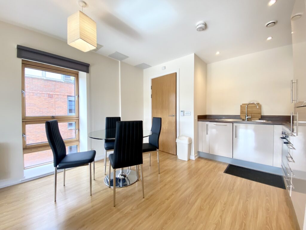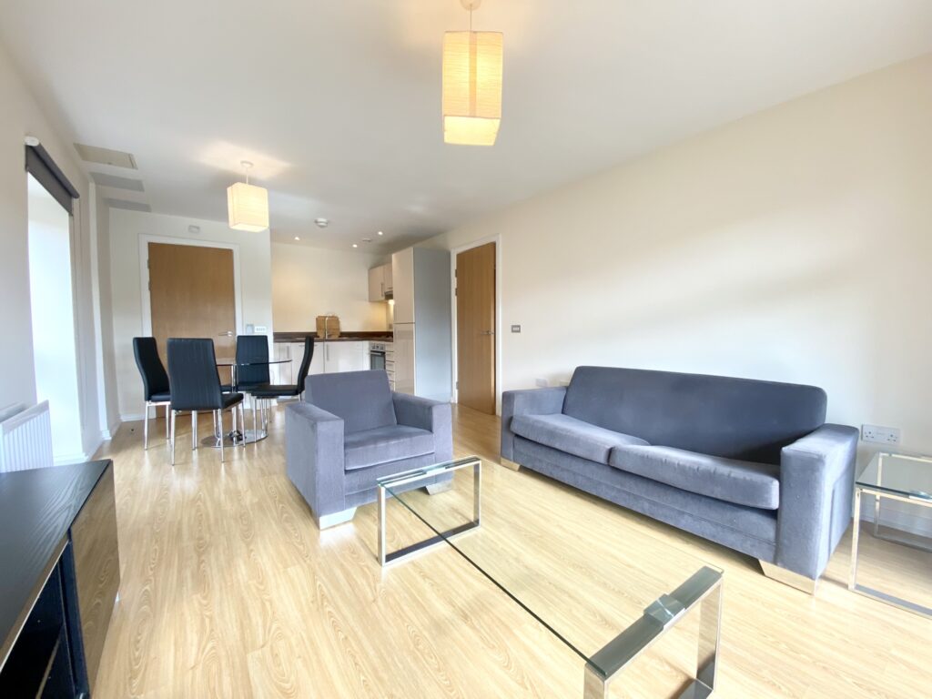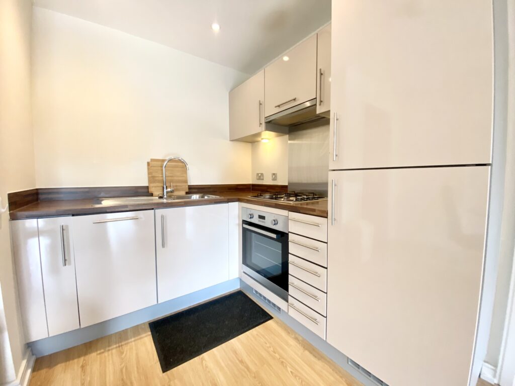 One Bedroom Apartment in the sought-after Horizon development on the edge of Cabot Circus. Four storeys above street level these apartments are arranged around a rooftop garden, exclusively for the use of residents. This apartment has an open plan kitchen/living room with double aspect and access to a good size balcony overlooking Castle Park. The well fitted contemporary kitchen comes with integrated appliances plus there’s a washer dryer in a separate utility cupboard. The master bedroom has a fitted wardrobe and there is a family bathroom with shower over the bath. Tenancy Length: 12 months | Council Tax band: C | Security Deposit: £1615.38 | Holding Deposit: £323.07